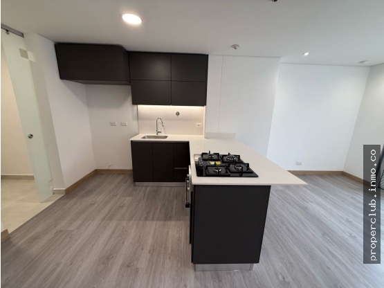 1 habitación con baño y Vestier, 1.5 baños en total, sala comedor, balcón con vista al oriente sin registro y sin poniente, cocina integral abierta y zona de ropas independiente. Parqueadero y cuarto util.